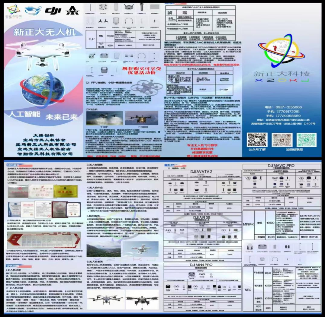 Great Heat 为了让公众直观地感受到无人机的科技魅力,宝鸡新正大科技精心规划设计,打造了一处集“展示+体验+互动”于一体的科普展位。展位整体以科技蓝为主色调,搭配宣传展板与无人机展示,一亮相便成为活动现场的“吸睛焦点”。 展位内部划分三大功能区:产品展示区陈列了农业植保无人机、工业巡检无人机、消费级航拍无人机等3类产品,每台无人机旁均配有图文展板,还附上了在农田喷洒、应急救援等场景中的实际应用案例;资料领取区整齐摆放着彩色宣传册,手册内不仅介绍了公司无人机发展历程与技术原理,还收录了公司业务与产品报价表,方便观众带走深入阅读;咨询互动区设置了长条桌与座椅,便于讲解人员与观众面对面交流,现场解答疑问,让科普更具针对性。 二、多维度宣传发力:让无人机知识“看得见、听得懂” Tech. Part.2